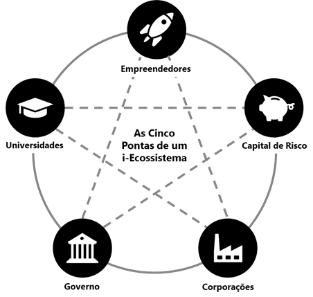 Em um i-ecossistema pujante, as universidades desempenham alguns papéis críticos como formar pessoas qualificadas para as demais pontas, transferir para o mercado tecnologias geradas em seus laboratórios e acelerar o processo de criação e desenvolvimento de startups. Em um período chamado de a era do conhecimento, seu templo maior, as universidades, definitivamente não podem ser ignoradas do processo de criação e consolidação de i-ecossistemas.